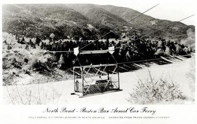 | Keywords: monochrome outdoor "North Bend - Boston Bar Aerial Car Ferry Only Aerial Automobile Ferry in North America Operates from Trans-Canada Highway" Post Card. Made in Canada. The North Bend Aerial Ferry operated in the Fraser Canyon between North Bend and Boston Bar, over the Fraser River, from 1940 to 1985. in its 45 years of operation, it carried 2,037,579 vehicles, 6,092,434 people and made 1,610,789 round trips. Crossing time was about 2.5 minutes. "North Bend - Boston Bar Aerial Car Ferry Only Aerial Automobile Ferry in North America Operates from Trans-Canada Highway" Post Card. Made in Canada. The North Bend Aerial Ferry operated in the Fraser Canyon between North Bend and Boston Bar, over the Fraser River, from 1940 to 1985. in its 45 years of operation, it carried 2,037,579 vehicles, 6,092,434 people and made 1,610,789 round trips. Crossing time was about 2.5 minutes. |