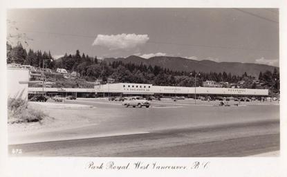 | Keywords: photo border outdoor "Park Royal, West Vancouver, B. C." Post Card. Made in Canada by J. C. Walker. Park Royal Shopping Centre, West Vancouver, BC. Canada's first shopping mall. Opened in September 1950 with Woodward's department store as its main anchor tenant. "Park Royal, West Vancouver, B. C." Post Card. Made in Canada by J. C. Walker. Park Royal Shopping Centre, West Vancouver, BC. Canada's first shopping mall. Opened in September 1950 with Woodward's department store as its main anchor tenant. |