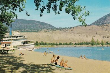 | Keywords: outdoor "The sternwheeler S.S. Sicamous at Penticton, B.C. Sternwheeler S.S. Sicamous - Now a social centre at Penticton, B.C." A Traveltime Product Published, distributed by Monahan Agency, Vernon, B.C. Built by the Canadian Pacific Railway for lake and river service, the S.S. Sicamous was launched in 1914. Retired from service in 1937, she was purchased by the City of Penticton in 1949 and placed on the Okanagan Lake beach in 1951. "The sternwheeler S.S. Sicamous at Penticton, B.C. Sternwheeler S.S. Sicamous - Now a social centre at Penticton, B.C." A Traveltime Product Published, distributed by Monahan Agency, Vernon, B.C. Built by the Canadian Pacific Railway for lake and river service, the S.S. Sicamous was launched in 1914. Retired from service in 1937, she was purchased by the City of Penticton in 1949 and placed on the Okanagan Lake beach in 1951. |