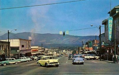 | Keywords: outdoor road "PORT ALBERNI, B.C., CANADA Third Avenue" Copyright Kodachrome Card. Color Photograph and Published by The Coast Publishing Co., Vancouver, Canada. Litho'd In Van., B.C. Canada. View looking north into the 3100-block of 3rd Avenue from the intersection at Argyle Street in Port Alberni, BC on Vancouver Island. "PORT ALBERNI, B.C., CANADA Third Avenue" Copyright Kodachrome Card. Color Photograph and Published by The Coast Publishing Co., Vancouver, Canada. Litho'd In Van., B.C. Canada. View looking north into the 3100-block of 3rd Avenue from the intersection at Argyle Street in Port Alberni, BC on Vancouver Island. |