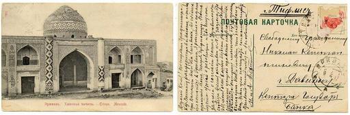 | Keywords: Postcard of Russia 1917 Yerevan.jpg ru Почтовая ка точка Э ивань Ханская мечеть 1917 Пов ежденная ма ка 1916 года с по т етом Александ а III 3 коп Personal collection Processed by A Sdobnikov 2009-10-23 100px<br/>100px PD-RusEmpire stamps Postcards of Russia Stamps of Russia 1916 1916 in Yerevan Mosques in Armenia Stamps of Russia to be categorised by subject |