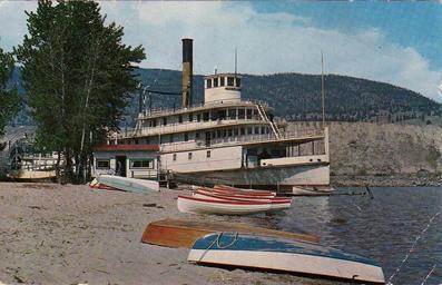 | Keywords: outdoor "S.S. SICAMOUS served as transportation on the Okanagan Lake for many years, and continues to serve as a social centre at Penticton, B. C." Published by The Coast Publishing Co., Ltd., Vancouver, Canada Built by the Canadian Pacific Railway and launched in 1914. Retired from service in 1937, she was purchased by the City of Penticton in 1949 and placed on the Okanagan Lake beach in 1951. "S.S. SICAMOUS served as transportation on the Okanagan Lake for many years, and continues to serve as a social centre at Penticton, B. C." Published by The Coast Publishing Co., Ltd., Vancouver, Canada Built by the Canadian Pacific Railway and launched in 1914. Retired from service in 1937, she was purchased by the City of Penticton in 1949 and placed on the Okanagan Lake beach in 1951. |