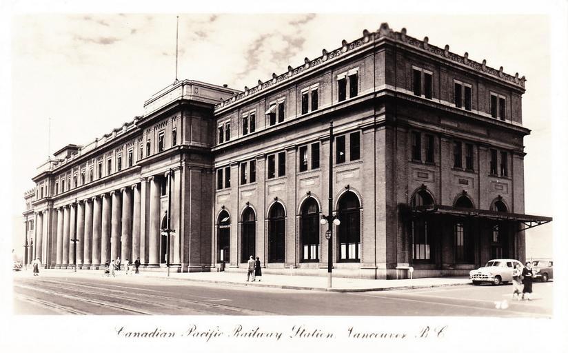 Keywords: architecture building white background photo border "Canadian Pacific Railway Station, Vancouver, B.C." Post Card. Made in Canada by J.C. Walker, Chilliwack, B.C. CPR Station, 601 West Cordova Street, Vancouver, BC. Built 1912-14; extant. Architect: Barott, Blackader and Webster. This is the third depot structure for the Canadian Pacific Railway in Vancouver. "Canadian Pacific Railway Station, Vancouver, B.C." Post Card. Made in Canada by J.C. Walker, Chilliwack, B.C. CPR Station, 601 West Cordova Street, Vancouver, BC. Built 1912-14; extant. Architect: Barott, Blackader and Webster. This is the third depot structure for the Canadian Pacific Railway in Vancouver. |