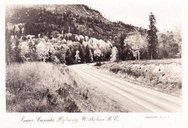 | Keywords: photo border outdoor monochrome "Trans-Canada Highway, Westholme B. C. Worsley Studio" Post Card. Made in Canada. View looking north up the Trans-Canada Highway (Island Highway; Hwy. 1) at Westholme, BC on Vancouver Island near the Somenos Road junction. This stretch of the Vancouver Island TCH was then new and by-passed the old Island Highway route between Duncan and Chemainus via today's Somenos Road and Westholme Road (Hwy. 1A). "Trans-Canada Highway, Westholme B. C. Worsley Studio" Post Card. Made in Canada. View looking north up the Trans-Canada Highway (Island Highway; Hwy. 1) at Westholme, BC on Vancouver Island near the Somenos Road junction. This stretch of the Vancouver Island TCH was then new and by-passed the old Island Highway route between Duncan and Chemainus via today's Somenos Road and Westholme Road (Hwy. 1A). |