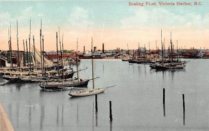 | Keywords: water waterfront outdoor vehicle boat drawing "Sealing Fleet, Victoria Harbor, B.C." Souvenir Post Card. The Valentine & Sons' Publishing Co., Ltd. Montreal and Toronto. Printed in Great Britain. View looking east from the west end of the Point Ellis Bridge (now the Bay Street Bridge) looking across the Upper Harbour towards the City of Victoria, BC on Vancouver Island. See if you can spot the Sealing Fleet in this 1907 film (at 2:47 and 4:22): www.youtube.com/watch?v=Tqk0yH2zy9s "Sealing Fleet, Victoria Harbor, B.C." Souvenir Post Card. The Valentine & Sons' Publishing Co., Ltd. Montreal and Toronto. Printed in Great Britain. View looking east from the west end of the Point Ellis Bridge (now the Bay Street Bridge) looking across the Upper Harbour towards the City of Victoria, BC on Vancouver Island. See if you can spot the Sealing Fleet in this 1907 film (at 2:47 and 4:22): www.youtube.com/watch?v=Tqk0yH2zy9s |