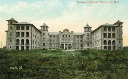 | Keywords: outdoor building manor architecture country house "General Hospital, Vancouver, B.C." Published by Valentine and Sons. The newly constructed General Hospital on West 10th Avenue between Heather Street and Willow Street in Fairview, Vancouver, BC. View looking south. Photo taken circa-1905 at near completion but before any landscaping of grounds had began. In later years, this old structure will be known as the Heather Pavilion. Architects: Grant and Henderson. Built after a January 1902 plebiscite to replace the overcrowded City Hospital of 1888 on Pender Street between Cambie and Beatty Streets. In January 1906, 47 patients were driven in horse-pulled ambulances across the old Cambie skid-bridge and up the trail to the 10th Avenue hospital buildings. "General Hospital, Vancouver, B.C." Published by Valentine and Sons. The newly constructed General Hospital on West 10th Avenue between Heather Street and Willow Street in Fairview, Vancouver, BC. View looking south. Photo taken circa-1905 at near completion but before any landscaping of grounds had began. In later years, this old structure will be known as the Heather Pavilion. Architects: Grant and Henderson. Built after a January 1902 plebiscite to replace the overcrowded City Hospital of 1888 on Pender Street between Cambie and Beatty Streets. In January 1906, 47 patients were driven in horse-pulled ambulances across the old Cambie skid-bridge and up the trail to the 10th Avenue hospital buildings. |
