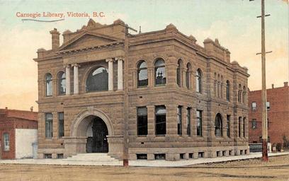 | Keywords: architecture outdoor building "Carnegie Library, Victoria, B. C." The Valentine & Sons' Publishing Co., Ltd. Montreal and Toronto. Printed in Great Britain. Carnegie Library, built 1904. 794 Yates Street at Blanshard Street, Victoria, BC on Vancouver Island. Architects: Hooper and Watkins. "Carnegie Library, Victoria, B. C." The Valentine & Sons' Publishing Co., Ltd. Montreal and Toronto. Printed in Great Britain. Carnegie Library, built 1904. 794 Yates Street at Blanshard Street, Victoria, BC on Vancouver Island. Architects: Hooper and Watkins. |