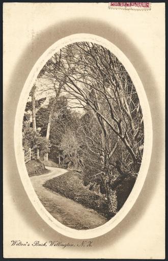 Keywords: circle round photo border Shows a view of a winding path in Wilton's Bush, in an oval frame. Quantity: 1 colour photo-mechanical print(s) on postcard.. Physical Description: Photolithograph , 143 x 91 mm. Postcard. Wilton's Bush, Wellington, N.Z. New Zealand post card (carte postale). F.T. series no. 101. Printed in Saxony. [ca 1910]. [Postcards collected by May Stephens. 1900-1920s]. Ref: Eph-POSTCARD-Stephens-15. Alexander Turnbull Library, Wellington, New Zealand. natlib.govt.nz/records/23244716 Shows a view of a winding path in Wilton's Bush, in an oval frame. Quantity: 1 colour photo-mechanical print(s) on postcard.. Physical Description: Photolithograph , 143 x 91 mm. Postcard. Wilton's Bush, Wellington, N.Z. New Zealand post card (carte postale). F.T. series no. 101. Printed in Saxony. [ca 1910]. [Postcards collected by May Stephens. 1900-1920s]. Ref: Eph-POSTCARD-Stephens-15. Alexander Turnbull Library, Wellington, New Zealand. natlib.govt.nz/records/23244716 |