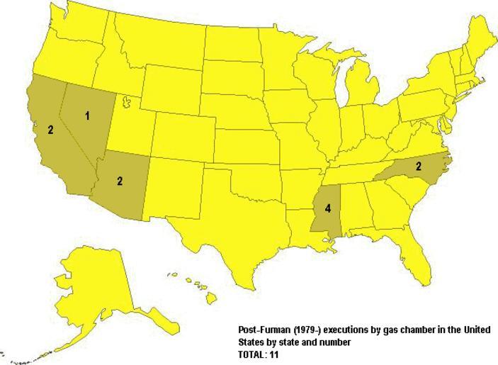 Keywords: PostFurmanUSGasChamber.gif Post-Furman 1979- executions by gas chamber in the U S by state and number own 2008-02-07 Darth Kalwejt Check categories 2008 November 23 en wikipedia Gas_chamber de wikipedia Gaskammer_ Todesstrafe Death penalty maps of the United States |