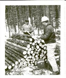 | Keywords: verlin swartzendruber verlinswartzendruber posts pulp wood logging marlboro mennonite board of missions mennonite mission network voluntary service alberta mennoniteboardofmissionsmennonitemissionnetworkvoluntaryservicealberta monochrome Caption: 1965. Marlboro, Alberta. Verlin Swartzendruber (r) checks for proper length and thickness of the fence posts and pulpwood cut by the men of the Bushmen Contractors. Citation: Mennonite Board of Missions. Photographs. General, Alberta Voluntary Service. 1962-1965. IV-10-7.2 Box 1 Folder 17 Photo 6. Mennonite Church USA Archives - Goshen. Goshen, Indiana. Caption: 1965. Marlboro, Alberta. Verlin Swartzendruber (r) checks for proper length and thickness of the fence posts and pulpwood cut by the men of the Bushmen Contractors. Citation: Mennonite Board of Missions. Photographs. General, Alberta Voluntary Service. 1962-1965. IV-10-7.2 Box 1 Folder 17 Photo 6. Mennonite Church USA Archives - Goshen. Goshen, Indiana. |