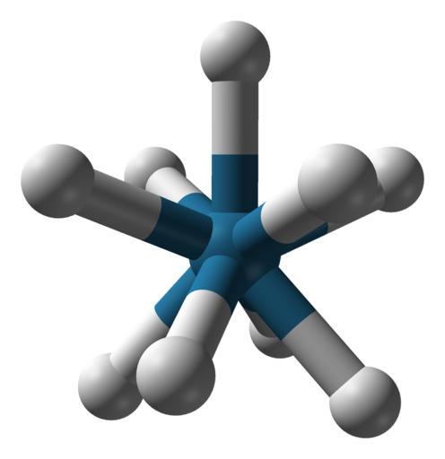Keywords: Potassium-nonahydridorhenate-xtal-1999-Re-coordination-3D-balls-BP.png Ball-and-stick model of the ReH<sub>9</sub><sup>2 ˆ’</sup> ion in the crystal structure of potassium nonahydridorhenate VII K<sub>2</sub>ReH<sub>3</sub> Neutron diffraction data from http //www3 interscience wiley com/journal/62002643/abstract Z Anorg Allg Chem 1999 625 1143-1146 Model constructed in http //www crystalmaker com/ CrystalMaker 8 1 Image generated in http //accelrys com/products/discovery-studio/visualization/discovery-studio-visualizer html Accelrys DS Visualizer Own 2009-05-05 Ben Mills Benjah-bmm27 Images by Ben Mills Potassium nonahydridorhenate Nonahydridorhenate ion |