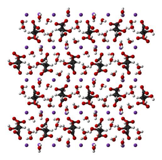 Keywords: Potassium-sodium-tartrate-tetrahydrate-xtal-3D-balls.png Ball-and-stick model of part of the crystal structure of potassium sodium tartrate tetrahydrate KNaC<sub>4</sub>H<sub>4</sub>O<sub>6</sub>·4H<sub>2</sub>O in its paraelectric phase at 105 K X-ray crystallographic data from http //dx doi org/10 1107/S1600536808005266 Acta Cryst 2008 E64 m507-m508 Model constructed in http //www crystalmaker com/ CrystalMaker 8 1 Image generated in http //accelrys com/products/discovery-studio/visualization/discovery-studio-visualizer html Accelrys DS Visualizer Own 2009-03-15 Ben Mills Benjah-bmm27 Images by Ben Mills Potassium sodium tartrate Crystal structures of organic compounds |