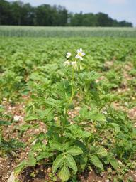 Keywords: potato field potato blossom blossom bloom white potato solanum tuberosum earth apple herdöpfel grundbirne grumbeer crop nachtschattengewächs solanaceae potato shrub