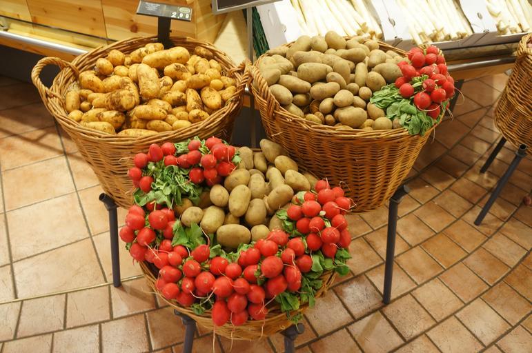 Keywords: potatoes vegetables radishes food organic healthy market basket fresh