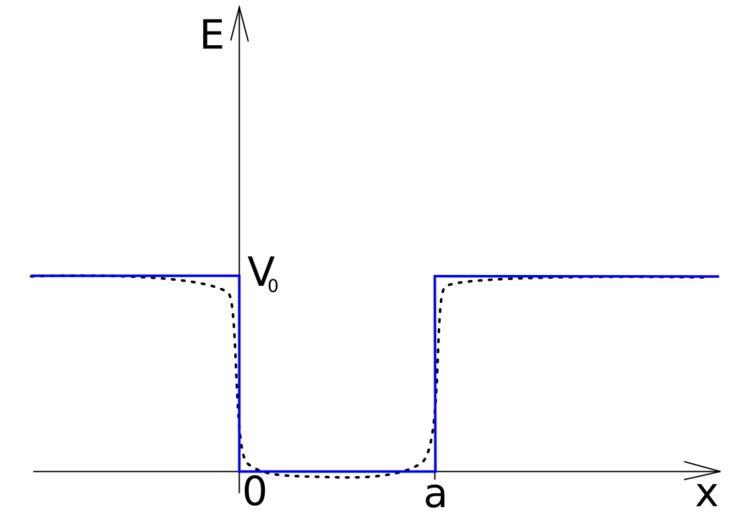 Keywords: Potencialova jama.svg Pravouhla potencialova jama jako aproximace realneho potencialu Own dnes Pajs 1D finite square wells