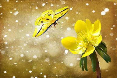 Keywords: potentilla kobold plant flower blossom bloom yellow butterfly insect animal close spring painting greeting card