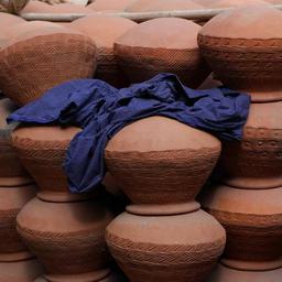 Keywords: pottery amphora clay pots sound pots sarong cloth longji burma myanmar fragile vessels craft hand labor