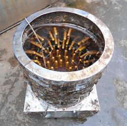 | Keywords: Poultry plucking machine 01.jpg en Poultry plucking machine This machine stands around 1 metre high and is electrically operated Rubber posts project inward to pluck the bird while it tumbles about within the spinning drum This image was taken at the back of an urban market by the live poultry area common in such markets in Haikou Hainan Province People's Republic of China 2012-02-29 own Anna Frodesiak cc-zero Uploaded with UploadWizard Poultry of China Files by User Anna Frodesiak Meat processing Agriculture in China Plucking poultry |