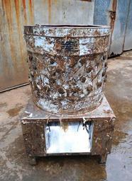 | Keywords: Poultry plucking machine 02.jpg en Poultry plucking machine This machine stands around 1 metre high and is electrically operated Rubber posts project inward to pluck the bird while it tumbles about within the spinning drum This image was taken at the back of an urban market by the live poultry area common in such markets in Haikou Hainan Province People's Republic of China 2012-02-29 own Anna Frodesiak cc-zero Uploaded with UploadWizard Poultry of China Files by User Anna Frodesiak Meat processing Plucking poultry Agriculture in China |