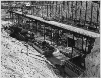 | Keywords: "Power house concrete blocks on west side, shown under the lower placing trestle." - NARA - 294299.tif Scope and content Photograph from Volume Two of a series of photo albums documenting the construction of the Grand Coulee Dam and related work on the Columbia Basin Project General notes 294299 Local identifier Department of the Interior Bureau of Reclamation Engineering and Research Center 05/18/1981 - 03/04/1988 NARA's Rocky Mountain Region Denver NRGA Building 48 Denver Federal Center West 6th Avenue and Kipling Street Denver CO 80225-0307 1936-03-31 Record group Record Group 115 Records of the Bureau of Reclamation 1889 - 2008 Record group ARC 444 Photograph albums compiled 1903 - 1972 Series ARC 293611 File unit File unit ARC Variant control numbers NAIL Control Number NRG-115-CONSTPHO85006-COLBASIN21027 yes Other versions <gallery> File Power_house_concrete_blocks_on_west_side _shown_under_the_lower_placing_trestle _-_NARA_-_294299 tif tif File Power_house_concrete_blocks_on_west_side _shown_under_the_lower_placing_trestle _-_NARA_-_294299 jpg jpg </gallery> NARA-cooperation PD-USGov Construction of the Grand Coulee Dam NARA TIF images with categorized JPGs |