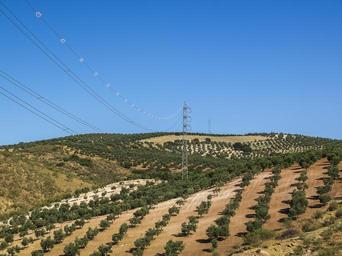 Keywords: power lines high-voltage tower torres lying hv electrical electrical tower electricity cables olive trees sky olives crops trees spain field olive groves agriculture
