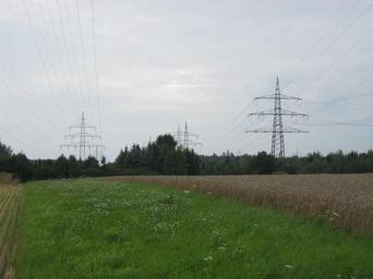 | Keywords: Powerlines Oberjettingen.JPG en Powerlines leaving Oberjettingen substation northward On the right 380 kV/110 kV-line to Pulverdingen In the middle 110 kV-line to Herrenberg On the left 110 kV-line to Merklingen and Rohrdorf which splits a few dozen metres northward own Zonk43 2010-08-17 Jettingen Powerline towers in Germany |