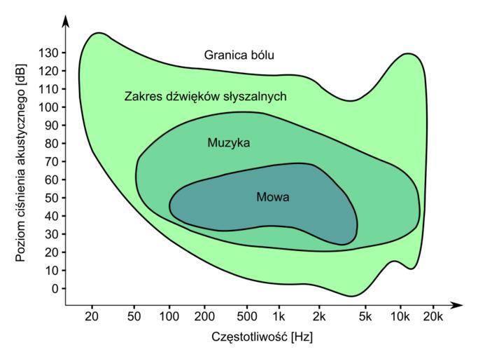 | Keywords: Powierzchnia slyszalnosci.svg pl Diagram przedstawiający powierzchnię słyszalności own CLI 2009-12-18 na podstawie rysunku z książki Zbigniew Kulka Materiały do przedmiotu Cyfrowe przetwarzanie sygnałów fonicznych 2004 Warszawa Fletcher loudness contours Hearing Psychoacoustics |