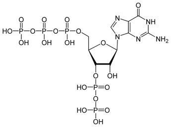 Keywords: PppGpp.svg en pppGpp; guanosine pentaphosphate; GDP-TP; magic spot II de Guanosinpentaphosphat Own Yikrazuul 2008-11-18 Nucleotides Purines