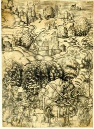 | Keywords: PPW Schwäbischer Krieg.jpg Karte des Schwabenkriegs 1499; Fragment des Blatts 4 das Soldaten beim Zug durch Schwaben darstellt Im Hintergrund die Städte Markdorf Ravensburg und Buchhorn Friedrichshafen British Museum Inv 1845 0809 107 1499-1503 Monogrammist PPW von Köln PD-old thumb 200px none all sheets complete PD-old-100 History of Ravensburg Markdorf in art Swabian War Friedrichshafen in art | ||||