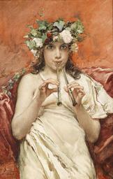 | Keywords: Pradilla y Ortiz Flöte spielender Knabe.jpg Flöte spielender Knabe mit Efeu im Haar signiert und datiert F Pradilla Roma 80 Aquarell auf Papier 71 x 45 cm http //www dorotheum com/ 1880 Creator Francisco Pradilla y Ortiz PD-old-100 Francisco Pradilla y Ortiz 1880 paintings Auloi Flutists in art Ivy wreaths Hedera in art Watercolor paintings of men Images from Dorotheum Paintings of sitting women playing musical instruments | ||||