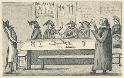 | Keywords: Præsten formaner tømrersvendene.jpg Præsten formaner tømrersvendene Satirisk radering fra 1794 der viser kapellanen ved Nikolaj Kirke I H Rørbye der prøver at tale de strejkende tømrersvende til rette i det herberg hvor de strejkende befandt sig Karikatur-Album 1 del 1906 C E Jensen Expired copyright PD-Art History of Copenhagen |