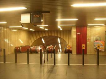 | Keywords: Prague metro Flora station vestibule 103.jpg Flora stanice metra v Praze Pohled z podpovrchového vestibulu na horní ústí eskalátorového tunelu Flora station of Prague Metro A view from subterranean vestibule to upper end of escalator tunnel Flora metro station Ticket markers in the Prague Metro Escalators in the Prague Metro Digital clocks Clocks in Prague Metro Time 15 29 | ||||