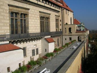 Keywords: prague tourism castle old palace detail building architecture outdoor plateau benches