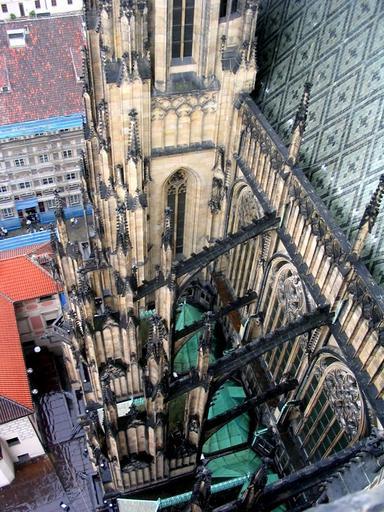 Keywords: PragueCathedralRoof.jpg A view of the Prague Cathedral Author Alejandro Tiraboschi 2006-12-13 own assumed Tirabo Flying buttresses of St Vitus Cathedral
