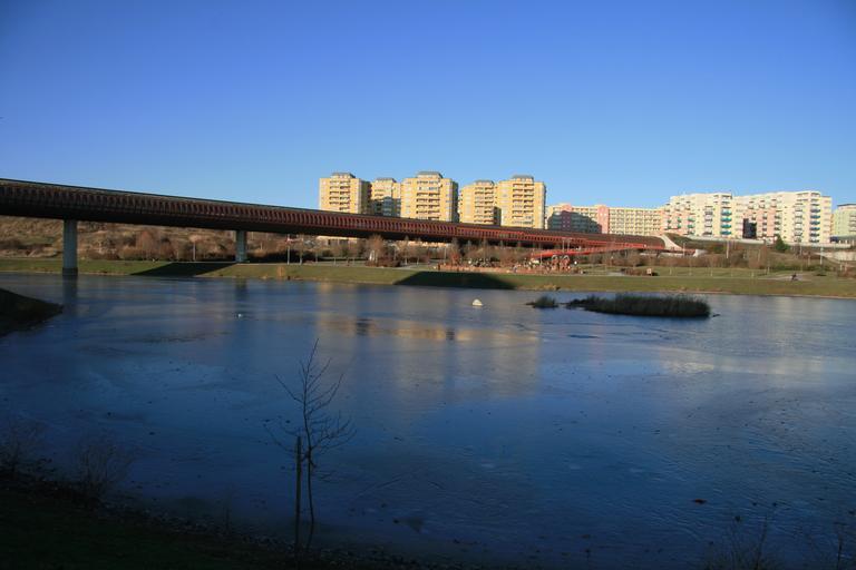 | Keywords: Praha Stodůlky most metro 6.jpg  Prague Metro line B over 2 reservoir on Prokopský potok in Stodůlky Prague Czech Republic pražské metro trasy B nad 2 nádrží na Prokopském potoce ve Stodůlkách Jihozápadní Město Praha 13 own Karelj 2009-12 50 2 49 55 N 14 20 20 90 E Nové Butovice Most metra přes údolí Prokopského potoka Nepomucký rybník Stodůlky  |