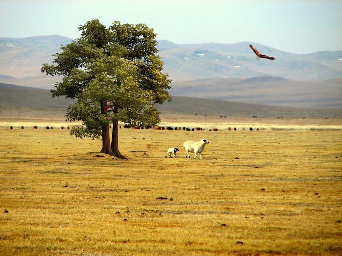 Keywords: prairie steppes mountains vegetation nature birds fly beauty horses animals eagles sheep