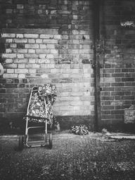 Keywords: pram wall street urban stroller buggy transport pushchair brick dirty old vintage grunge