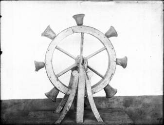 | Keywords: Prayer bells on wheel at Mission Santa Barbara, ca.1900 (CHS-4165).jpg Mission Santa Barbara ca 1900 Eight bells can be seen attached to the rim of a wooden wheel at center The wheel turns freely by a crank attached to a rod held by a small wooden frame The wheel appears to be attached to a wooden board Photographer James George Wharton Filename CHS-4165 Subject file heading Mission Santa Barbara Part of collection California Historical Society Collection 1860-1960 Format glass plate negatives Type images; physical objects Geographic subject city or populated place Santa Barbara; Santa Barbara Repository name USC Libraries Special Collections Accession number 4165 Microfiche number 1-144-108 Archival file chs_Volume52/CHS-4165 tiff Part of subcollection Title Insurance and Trust and C C Pierce Photography Collection 1860-1960 Repository address Doheny Memorial Library Los Angeles CA 90089-0189 Subject adlf religious facilities Geographic subject country USA Format aacr2 2 photographs glass photonegative photoprint b w ; 17 x 22 cm Rights Digitally reproduced by the USC Digital Library; From the California Historical Society Collection at the University of Southern California Call number CHS-4165 Project USC Repository email specol usc edu Contributing entity California Historical Society Publisher of the digital version University of Southern California Libraries Format aat photographic prints; photographs Geographic subject state California Legacy record ID chs-m6265; USC-1-1-1-6374 Access conditions Send requests to address or e-mail given Phone 213 821-2366; fax 213 740-2343 Geographic subject county Santa Barbara Geographic subject roadway 2201 Laguna Street Subject lcsh Bells; Missions Spanish Subject Santa Barbara Mission Not given George Wharton James 1858 1923 http //digitallibrary usc edu/cdm/ref/collection/p15799coll65/id/6306 PD-old-70-1923 Mission Santa Barbara ¢Bells Bells in California 1900 in California Images from USC Digital Library uploaded by Fæ Photographs by George Wharton James California Historical Society Collection 1860-1960 Glass plate negatives |