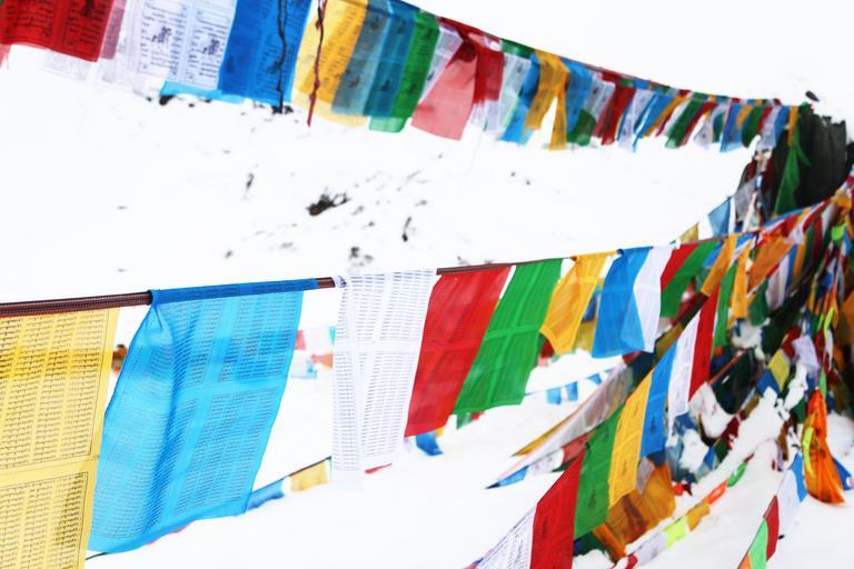 Keywords: prayer flags tibet in shergyla mountain pass color snow