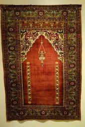 | Keywords: Prayer rug, Turkey, Kaisariyeh, late 19th century, silk - Huntington Museum of Art - DSC04863.JPG en Exhibit in the Huntington Museum of Art Huntington West Virginia USA Photography was permitted in the museum without restriction This artwork is in the public domain because the artist died more than 70 years ago 2013-05-16 13 41 19 own Daderot cc-zero Rugs in the Huntington Museum of Art Uploaded with UploadWizard Prayer rugs | ||||