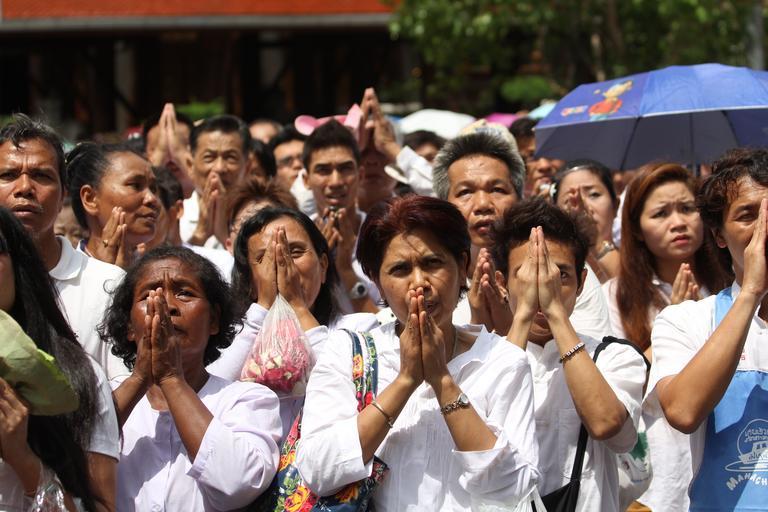 Keywords: praying buddhists thai temple buddhism thailand asia people believers belief religion prayer crowd