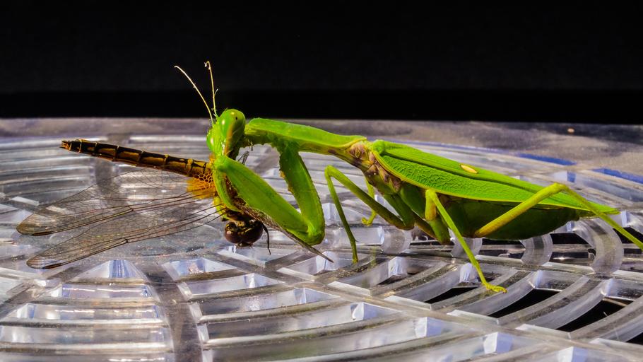 Keywords: praying mantis fishing locust dragonfly eat close