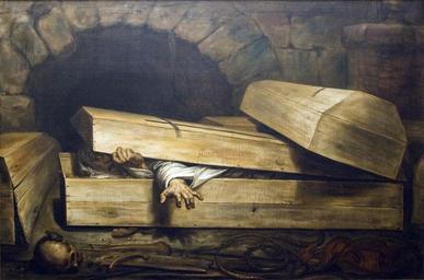 | Keywords: Precipitate Burial.jpg Artwork Creator Antoine Wiertz Elsietett temetés The Premature Burial L'inhumation précipitée Il sepolto vivo 1854 oil on canvas cm 160 235 Musée Wiertz Brussels place of discovery object history exhibition history credit line MORT DU CHOLERA / Certifié par nous Docteurs / Sandoutes text center fr accession number 1968 place of creation Photo by Szilas in the Wiertz Museum The Hasty Burial jpg https //www fine-arts-museum be/fr/la-collection/antoine-wiertz-linhumation-precipitee Q18221510 PD-old-auto-1923 1865 L'Inhumation précipitée by Antoine Wiertz |