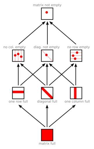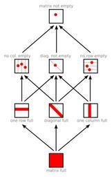 | Keywords: Predicate logic; 2 variables; implications.svg Implications between statements with two variables in first-order logic represented by sketches of their logical matrices own 2010 mate2code 100px 0 style width 100 ;height 40px;text-align center; color black; background f0f0f0; border 2px solid e0e0e0; margin 1px - 40px 38px This vector image was created with Inkscape and uploaded with Commonist 40px 38px Created with Inkscape Uploaded with Commonist Predicate logic; 2 variables; full Hasse diagram Predicate logic; 2 variables; coinciding variables Graphs with 8 vertices |