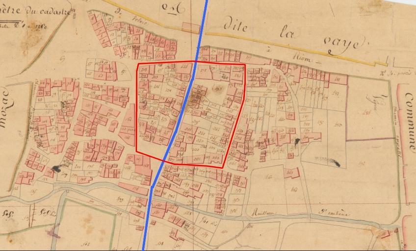 Keywords: Première formation du bourg de Mozac.jpg fr Extrait du cadastre de Mozac section B dite du village de Mozac arpentée en mai 1809 par Monsieur Cariat géomètre du cadastre en bleu passage de l'ancienne voie romaine et en rouge délimitations de la première formation du bourg de Mozac Archives départementales du Puy-de-Dôme 53 Fi 729 M Cariat géomètre du cadastre 1809-05 PD-old-100 Mozac Cadastral maps of France Ancient Roman sites in Auvergne Maps of ancient Roman roads in France Old maps of Auvergne 1809 |