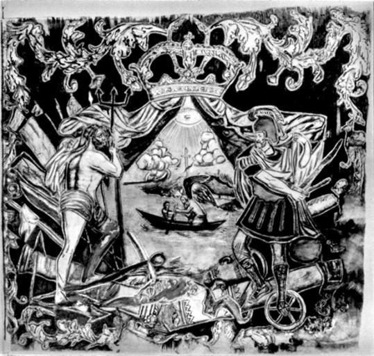 | Keywords: Preobrazhenskij flag 1700.jpg Ротное знамя лейб-гва дии П еоб аженского полка в 1700 году В цент е полотнища занавес аздвинутый а сом и ептуном вид мо я с лодкой в кото ой Сату н обучает юношу уп авлять веслом а заднем плане го ящий го од и ст оящиеся ко абли ад этой композицией изоб ажен выходящий из облаков меч под ней белая лента с надписью «Anno Domini 1700» Растительный о намент http //www hrono ru/heraldicum/flagi/chasti8 htm http //gorchev lib ru/ik/Predystoriya 20SPb_1703god/Pre_images/p437 jpg 2008 author PD-RusEmpire PD-old Banners in Russia Flags of Preobrazhensky Guard Regiment |