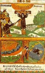 Keywords: Prep Evstratij ico.jpg Lubok with st Evstratyy http //www rusidea org/ a 25041001 century 18 anonimus PD-Art Religious lubok Crucifixion of martyrs