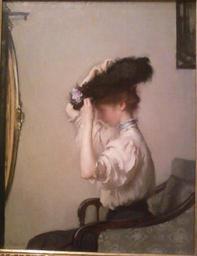 | Keywords: Preparing for the Matinee by Edmund Charles Tarbell.jpg en 1907 oil painting by Edmund Charles Tarbell of woman adjusting a hat 1907 Oil on canvas in 45 5 35 5 Institution Indianapolis Museum of Art American Impressionism Gallery object history credit line Gift of Mrs John G Rauch Sr accession number 82 201 Photographed by Zambonia 2011-10-28 PD-Art Uploaded with UploadWizard American paintings in the Indianapolis Museum of Art 1900s paintings in the United States Impressionist paintings of women |