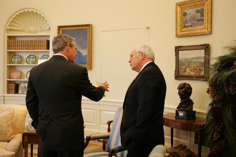 View Original:President_Bush_and_Vice_President_Cheney_in_the_Oval_Office.jpg (3504x2336)