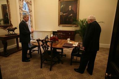 | Keywords: u.s. national archives usnationalarchives vice president dick cheney vicepresidentdickcheney vice president richard cheney vicepresidentrichardcheney washington d.c. dc nara:arcid=18545397 indoor These images have been released in response to a FOIA request, case number 2014-0012-F, received by the National Archives. For more information on these images, please visit Researching Vice Presidential Materials. These photos will be available in the National Archives Catalog in July 2015. Local Identifier: V022208DB-0063 Created By: President (2001-2009 : Bush). Office of Management and Administration. Office of White House Management. Photography Office. 1/20/2001-1/20/2009 From: Collection: Vice Presidential Records of the Photography Office (George W. Bush Administration), 1/20/2001 - 1/20/2009 Contact: Presidential Materials Division (LM) National Archives Building 7th and Pennsylvania Avenue NW Washington, DC 20408 Phone: 202-357-5200 Fax: 202-357-5939 Production Dates: 2/22/2008 Persistent URL: catalog.archives.gov/id/18545397 Access Restrictions: Unrestricted Use Restrictions: Unrestricted These images have been released in response to a FOIA request, case number 2014-0012-F, received by the National Archives. For more information on these images, please visit Researching Vice Presidential Materials. These photos will be available in the National Archives Catalog in July 2015. Local Identifier: V022208DB-0063 Created By: President (2001-2009 : Bush). Office of Management and Administration. Office of White House Management. Photography Office. 1/20/2001-1/20/2009 From: Collection: Vice Presidential Records of the Photography Office (George W. Bush Administration), 1/20/2001 - 1/20/2009 Contact: Presidential Materials Division (LM) National Archives Building 7th and Pennsylvania Avenue NW Washington, DC 20408 Phone: 202-357-5200 Fax: 202-357-5939 Production Dates: 2/22/2008 Persistent URL: catalog.archives.gov/id/18545397 Access Restrictions: Unrestricted Use Restrictions: Unrestricted |